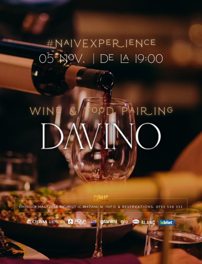 Pentru o seară unică, vă invităm Miercuri, 5 Noiembrie, începând de la ora 19:00, la Naive, la degustarea verticalei 2016-2020 a unuia dintre cele mai admirate vinuri românești: FLAMBOYANT de la DAVINO.