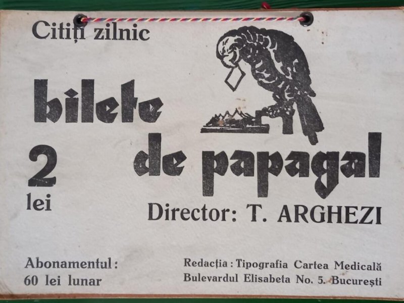 Într-o epocă în care presa românească interbelică se afla la apogeu, dominată de publicații ample, solemne și adesea pompoase, Tudor Arghezi a ales să meargă împotriva curentului. La 2 februarie 1928, în curtea casei sale din strada Mărțișor, poetul tipărește primul număr al revistei „Bilete de papagal” — un ziar minuscul, de doar 4 pagini, cu un format atipic de 32 x 12 cm, care avea să devină rapid o curiozitate a lumii literare bucureștene.