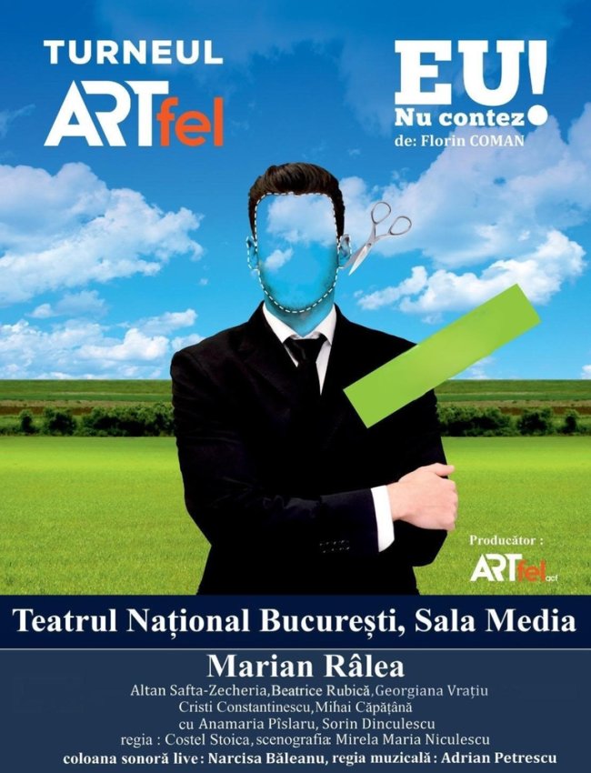 Distribuția se bucură de o echipa de 9 actori valoroși, în frunte cu domnul Marian Râlea, caștigător al premiului pentru cel mai bun actor de teatru, UNITER 2016 și al premiului pentru cel mai bun actor în rol principal la Festivalul Internațional de Dramaturgie Contemporană - Brașov 2017.