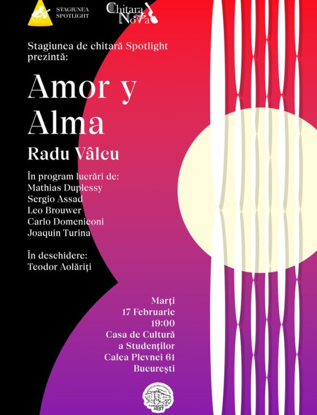 Pe scenă va urca Radu Vâlcu, unul dintre cei mai apreciați chitariști ai noii generații, laureat a peste 50 de premii naționale și internaționale, alături de Teodor Aolăriți, una dintre cele mai promițătoare tinere voci ale chitarei clasice românești.
