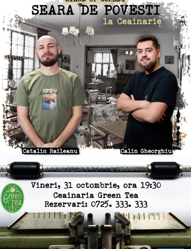 Hai vineri seara la ceainaria Green Tea, intr-un cadru calduros si primitor, sa asculti povesti reale, amuzante si interesante in seara de Halloween.