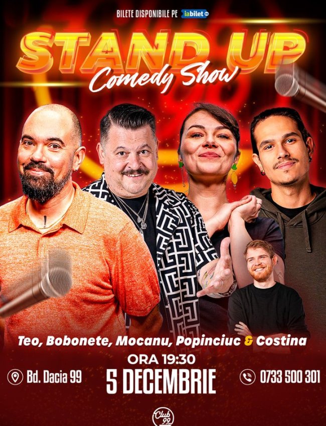 Stand-up Comedy cu Teo, Mihai Bobonete, Mocanu, Popinciuc - Tudor Costina la Club 99